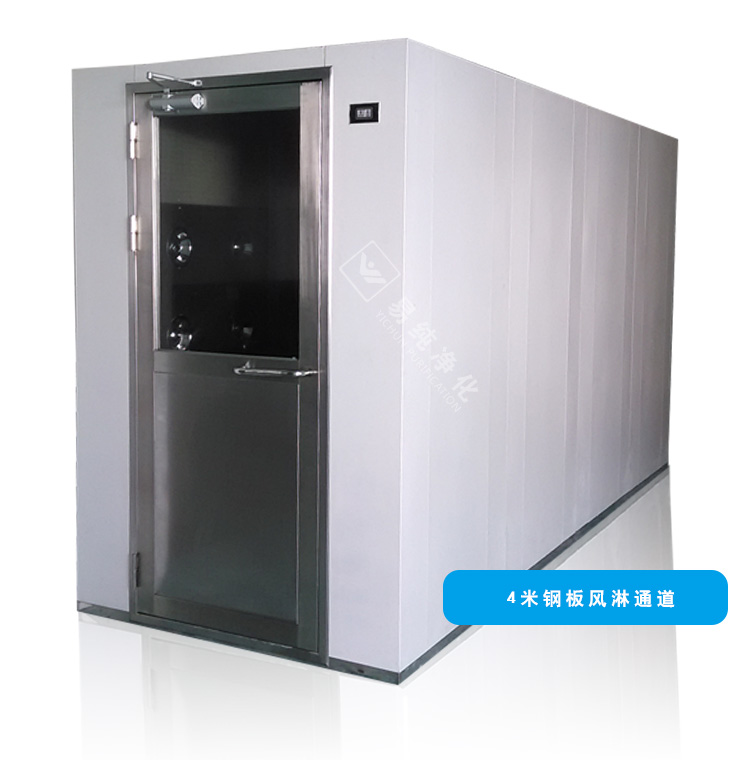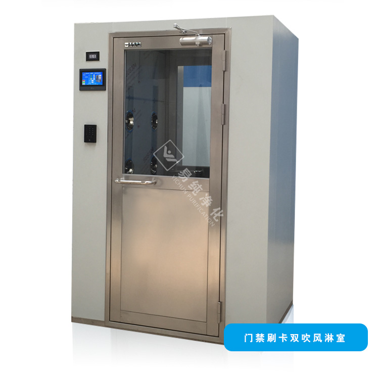 風淋室是人員進入潔凈室無塵車間所必備的凈化設備,通用性強,可與所有的潔凈室和潔凈廠房配套使用,工作人員進入車間時,必須通過此設備,用強勁潔凈的空氣,由可旋轉噴嘴從各個方向噴射至人身上,有效而迅速清除去附著在衣服上的灰塵、頭發、發屑等雜物,它可以減少人進出潔凈室所帶來的污染問題。